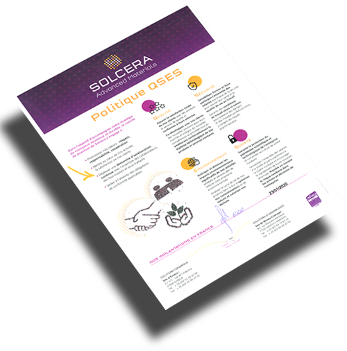 Solcera promotes a complete quality approach to its customers, employees, suppliers and service providers.